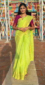 Madurai Sungudi Cotton Saree Plain Body with Tissue Border. First Quality, Comfortable and Rich look, without Blouse. Hand printed and hand dyeing using the natural dyes.Hand printed and hand dyeing using the natural dyes.  ...