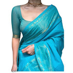 Madurai Sungudi Cotton Saree Plain Body with Tissue Border. First Quality, Comfortable and Rich look, without Blouse. Hand printed and hand dyeing using the natural dyes.Hand printed and hand dyeing using the natural dyes.