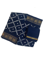 Madurai Sungudi Cotton Traditional Box design Wax Print Saree With Blouse & Zari Border
