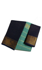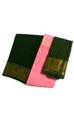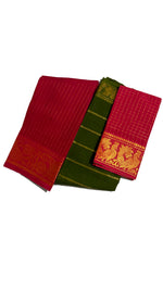 Madurai Sungudi Cotton Zari Checked saree with Velthari Contrast Color with Zari Border (Half & Half) with Blouse
