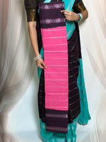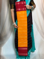 | Type | Two Side Medium Silver Zari Border Contrast Color & Body Velthari Design. |